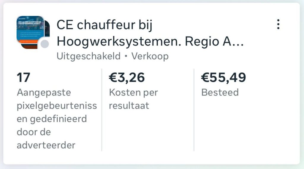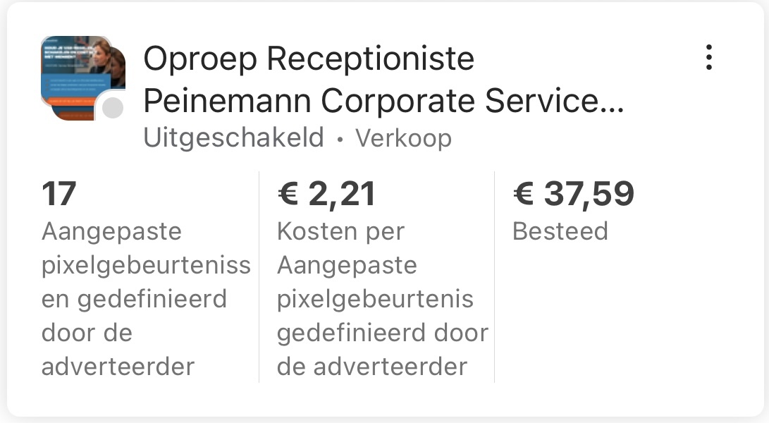 De campagne bereikte meer dan 50.000 mensen, met 2.674 kliks was dit goed voor een click-through-rate van 5,35%.